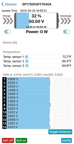 Also, most BMS on the market provides no way for the user to monitor the battery. It's very important to be able to see your individual cell group voltages and be able to monitor the amount of current going into and coming out of your battery.