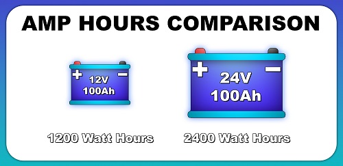 Wh = 100 Ah * 24V = 2,400 Wh - 48V system: